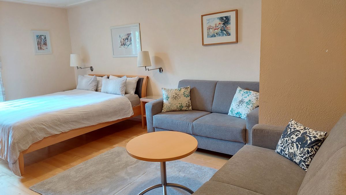 Im Appartement Terrasse fühlt man sich durch die hellen Räume und die Ausstattung mit Echtholzmöbel besonders wohl. Eine eigene Terrasse umgeben von Rosensträuchern und mit Zugang zum Garten stellt das Highlight der Ferienwohnung dar.