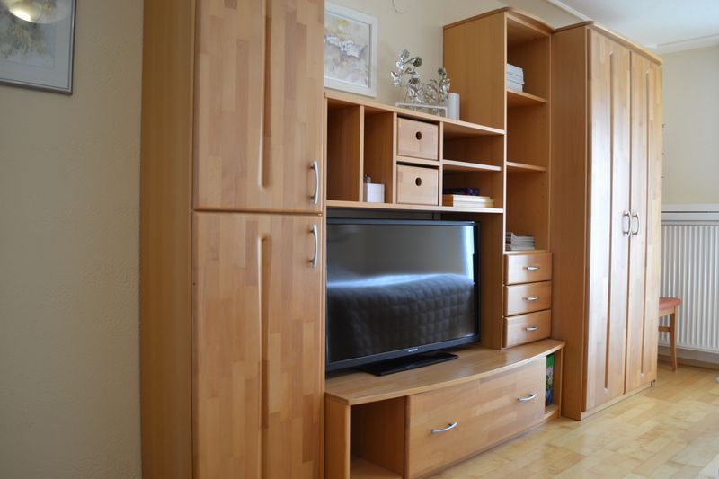 Küche: Die Küche mit Essbereich ist mit allem ausgestattet, was man zum Kochen braucht: Geschirrspüler, E-Herd mit Backrohr und Dunstabzug, Kühl-Gefrierschrank, Mikrowelle, Kaffeemaschine, Wasserkocher, Toaster, Eierkocher, Geschirr, Kochutensilien und Radio-CD-Player.